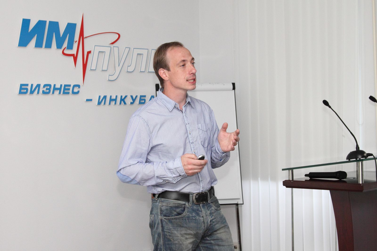 Воодушевили начинающих бизнесменов их опытные коллеги – действующие предприниматели. Они поделились со слушателями своими историями успеха во второй день стартап-конференции. Открыл сессию заместитель директора бизнес-инкубатора Денис Климанов. Он рассказал о компаниях-резидентах бизнес-инкубатора – ООО «Гейзер», годовой оборот которого за два года достиг 20 млн рублей, компании «Радомир», которая начиналась как хобби её основателя, и других. Реалии развития IT-проектов – гонку технологий и особенности продвижения - Денис Климанов проиллюстрировал примером компании «МоёВнимание».